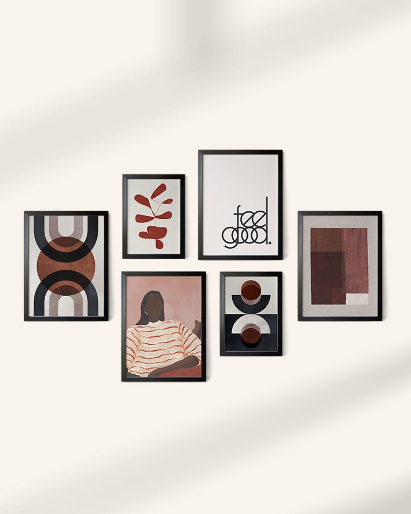 با این ست 6 تایی تابلو دکوراتیو ، فضایی شیک، مدرن و مملو از حس خوب را در منزل یا محل کار خود خلق کنید. این مجموعه با طراحیهای انتزاعی، اشکال هندسی جذاب و پالت رنگی گرم و هماهنگ، به سرعت کانون توجه هر فضایی خواهد شد. پیام مثبت "feel good" نیز، تکمیلکننده این گالری هنری مدرن است.