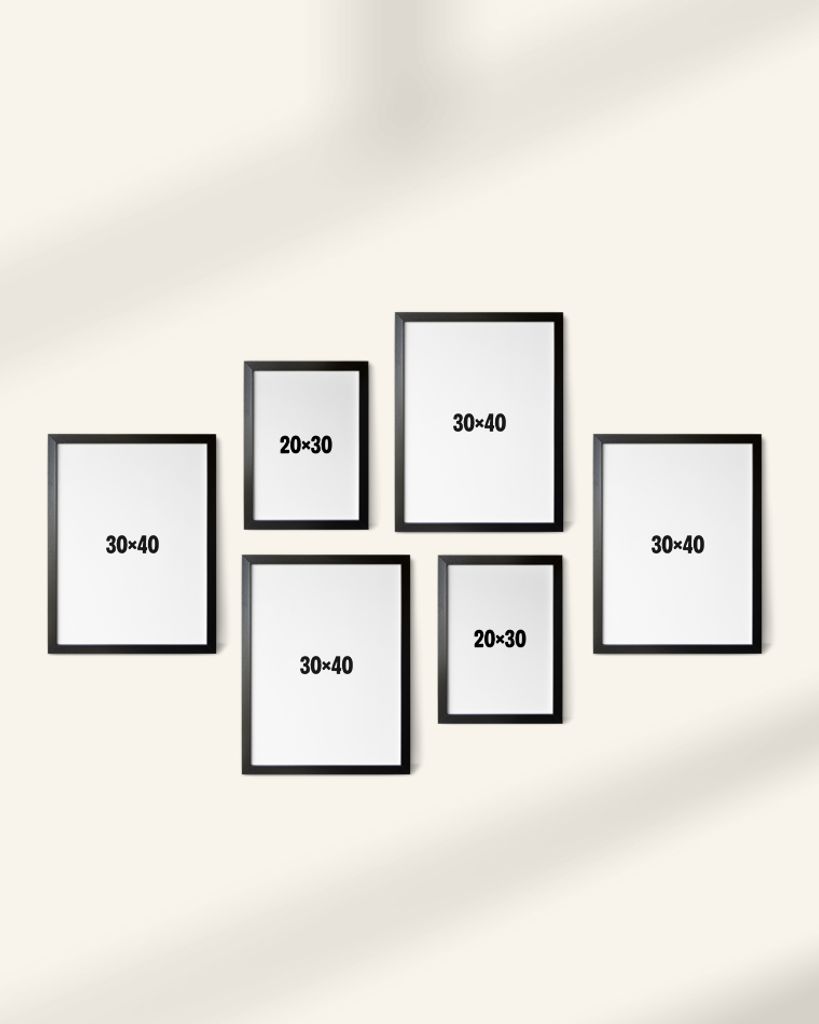 ابعاد ایدهآل برای دکوراسیون مدرن: ست شامل سایزهای مختلف است که برای ایجاد یک گالری دیواری متعادل و چشمگیر مناسب میباشد: