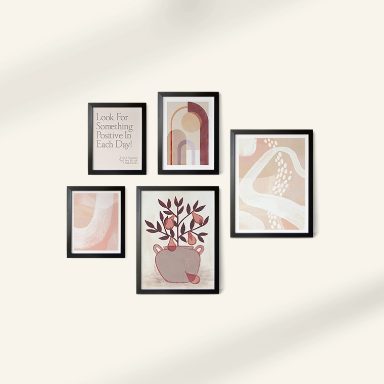 محتویات ست: این پکیج شامل 5 عدد تابلو با طرحهای کاملاً هماهنگ و مکمل یکدیگر است که چیدمانی چشمنواز و فکری را بر روی دیوار شما فراهم میآورد.