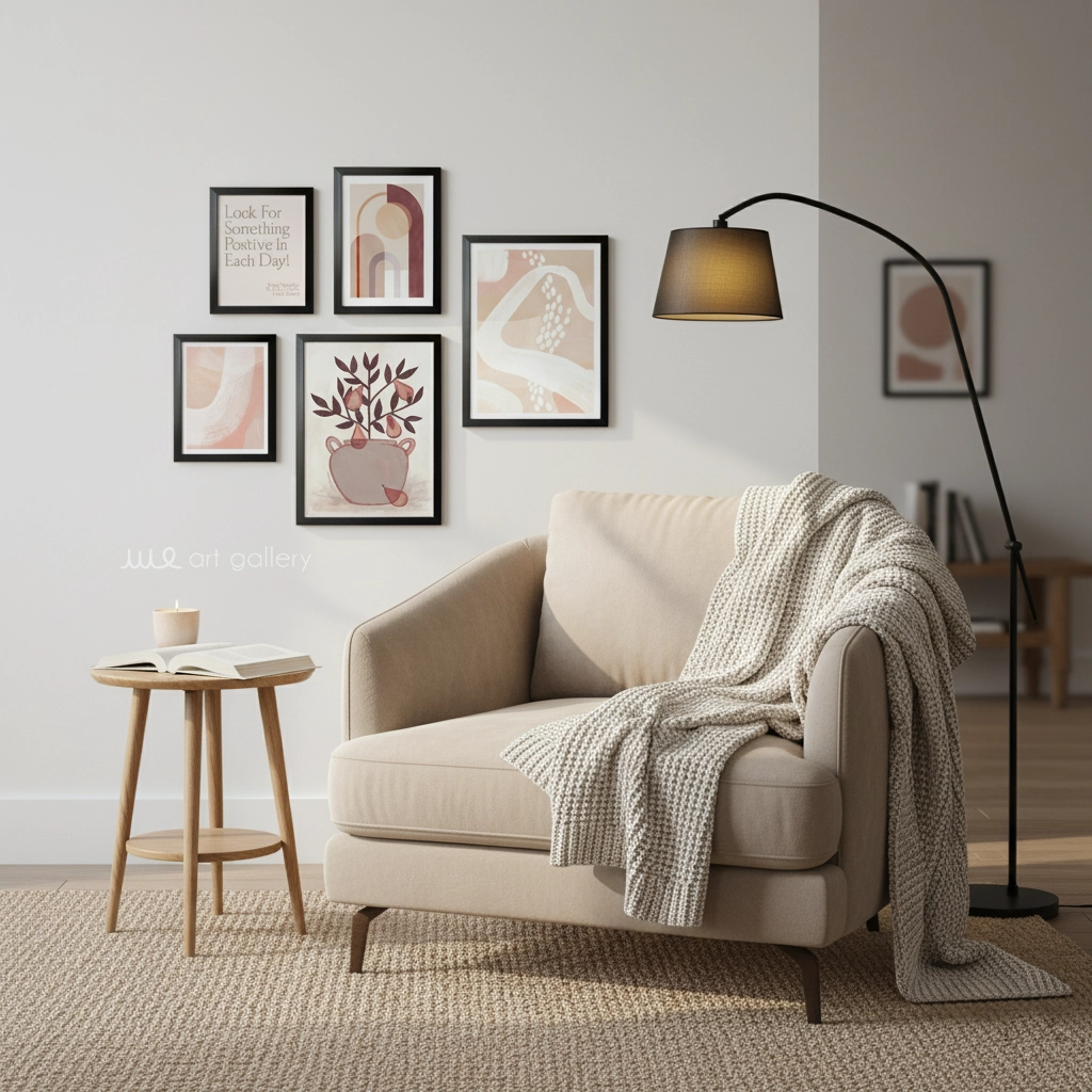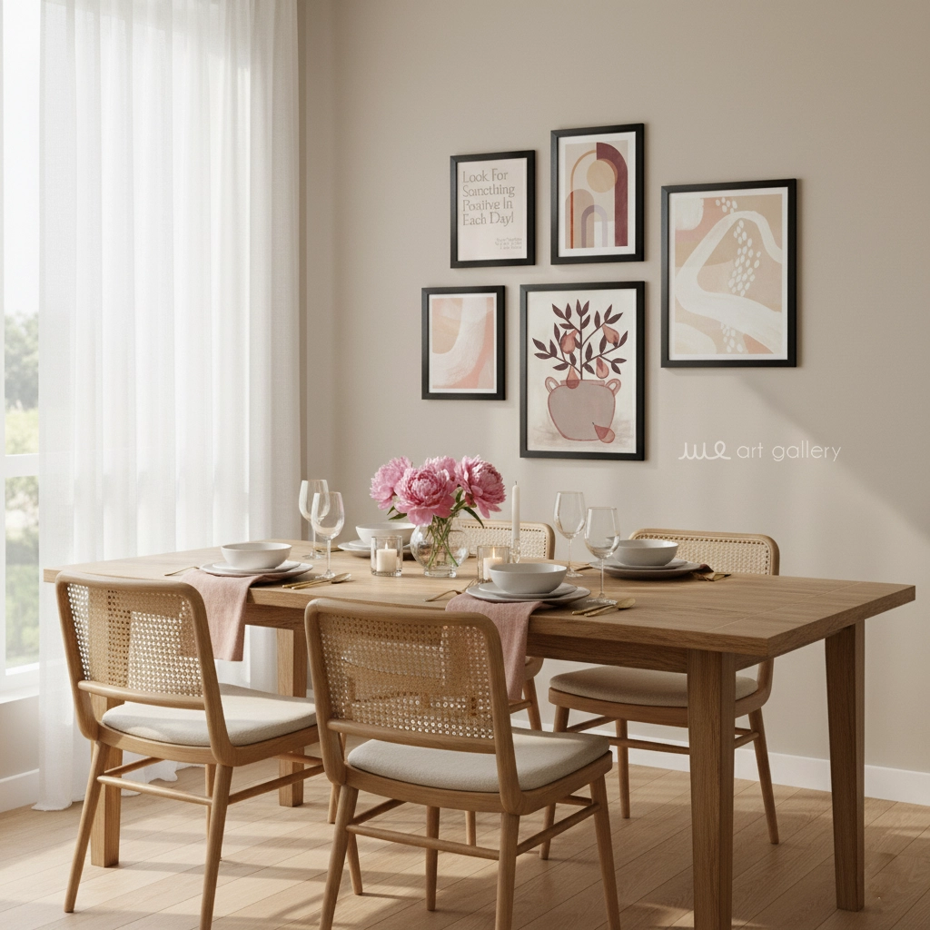 قابهای مقاوم و شیک (PVC): هر تابلو دارای قابی از جنس PVC با رنگ مشکی مات است. این قابها با طراحی ساده و مینیمال خود، کنتراست زیبایی با طرحهای داخل تابلو ایجاد میکنند و ظاهری کاملاً مدرن و شیک به مجموعه میبخشند.