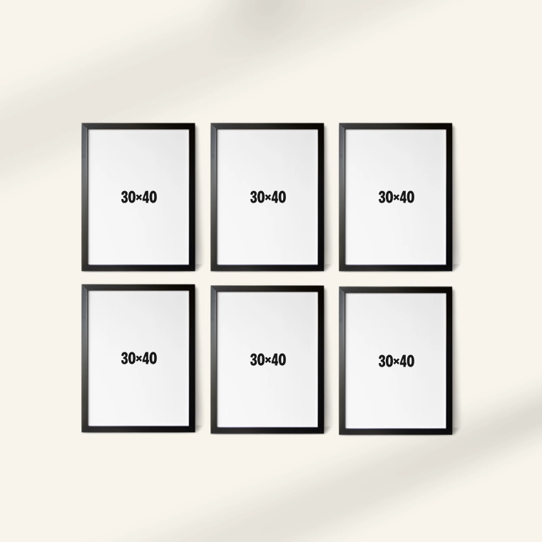 ابعاد استاندارد برای چیدمان هنرمندانه: تمامی 6 تابلوی این مجموعه در سایز استاندارد 30 در 40 سانتیمتر ارائه شدهاند. این ابعاد یکسان به شما امکان میدهد چیدمانهای متنوع و متقارن یا نامتقارن خلاقانه و شخصیسازی شدهای را بر روی دیوار خود ایجاد کنید.
