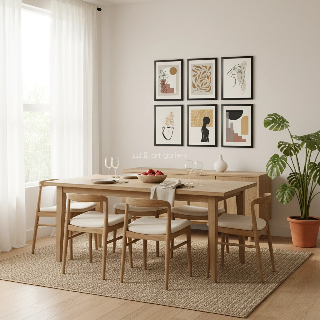 با ست 6 تایی تابلو دکوراتیو "Modern Serenity"، دیوارهای خود را به گالری از هنر معاصر و زیباییشناسی تبدیل کنید. این مجموعه منحصربهفرد، با ترکیبی هوشمندانه از طرحهای انتزاعی، خطوط مینیمال، اشکال هندسی و نقوش گیاهی، فضایی هنری، پویا و در عین حال آرامشبخش را در منزل یا محل کار شما خلق میکند.