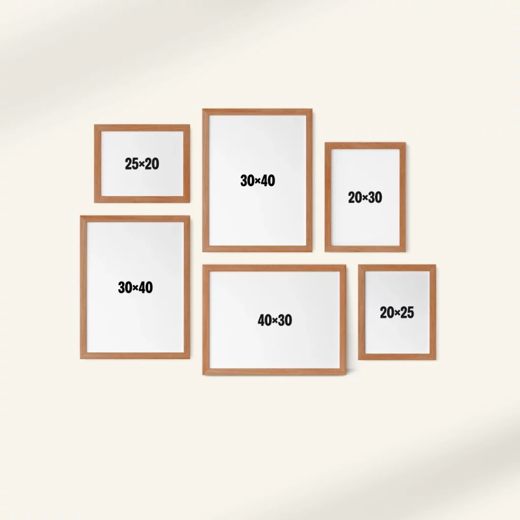 قابهای مقاوم و شیک (PVC): هر تابلو دارای قابی از جنس PVC با طرح چوب روشن یا طرح چوب طبیعی است (با توجه به تصویر، رنگ قاب قهوهای روشن/چوبی است). این قابها با طراحی کلاسیک و گرم خود، هارمونی بینظیری با پالت رنگی طرحها ایجاد میکنند و حس اصالت و صمیمیت را به فضا میآورند