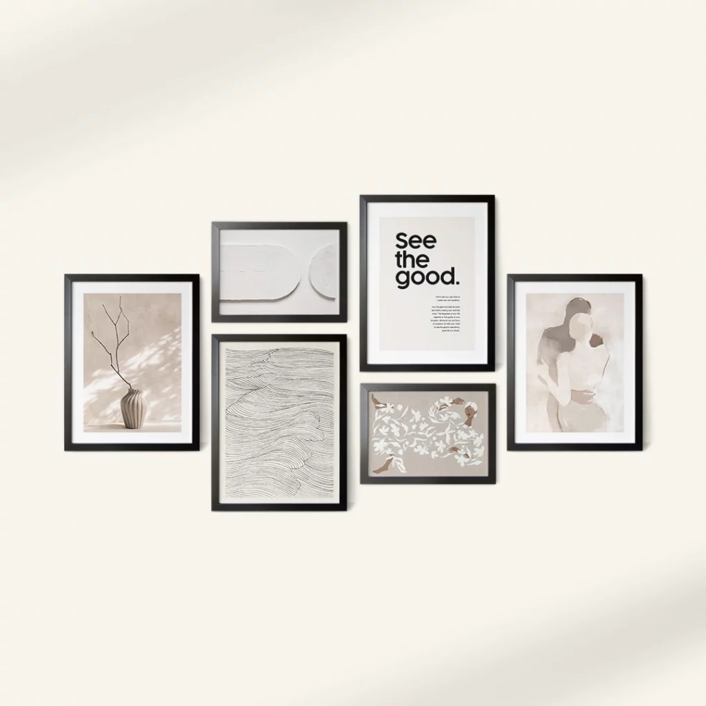 محتویات ست کامل: این پکیج شامل 6 عدد تابلو با طرحهای متنوع و در عین حال کاملاً هماهنگ است که چیدمانی پویا و چشمنواز بر روی دیوار شما فراهم میآورد. .