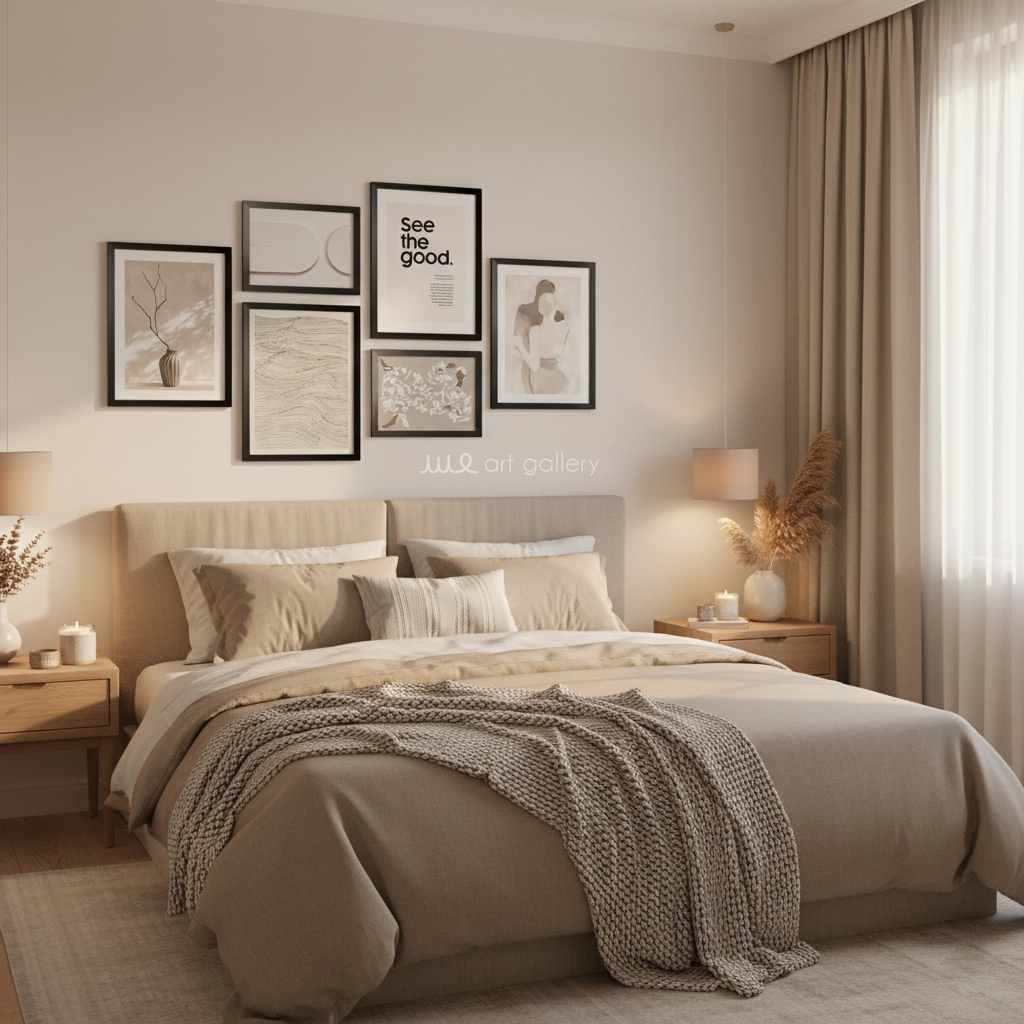 پالت رنگی آرام و خنثی: رنگهای غالب در این مجموعه شامل بژ، کرم، قهوهای روشن، خاکستری، سفید و مشکی است. این پالت رنگی ملایم و زمینهای، حسی از آرامش، سکون، سادگی و عمق فکری را به فضا میبخشد و به راحتی با دکوراسیونهای مدرن، مینیمال، اسکاندیناوی، بوهمی و حتی فضاهای کلاسیک با تم آرامشبخش هماهنگ میشود.