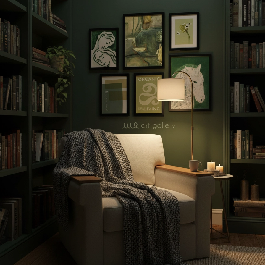 تلفیقی هنرمندانه از طبیعت، هنر و آرامش با طیف رنگی سبز و قابهای مدرن