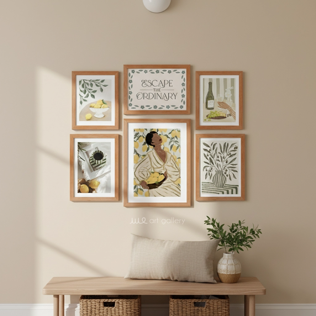 با ست 6 تایی تابلو دکوراتیو "Lemon Garden"، دیوارهای خود را به فضایی سرشار از طراوت، رنگ و انرژی مدیترانهای تبدیل کنید. این مجموعه منحصربهفرد، با الهام از باغهای لیمو، لحظات آرامشبخش و جزئیات دلنشین زندگی، با تلفیق هنرمندانه طرحهای فیگوراتیو، نقاشیهای لیمو و برگ زیتون، صحنههای دلنشین از نوشیدنی و یک پیام انگیزشی "Escape the Ordinary"، فضایی شیک، مدرن و دلنشین را در منزل یا محل کار شما خلق میکند. "Lemon Garden" نه تنها یک دکور زیبا، بلکه یادآور شادی، طراوت و لذت بردن از لحظات ساده زندگی است.