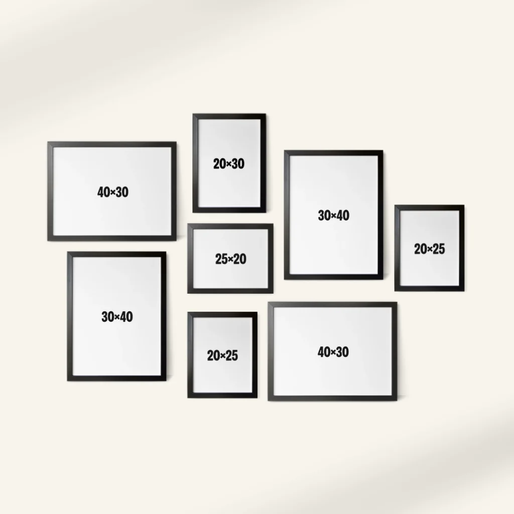 ابعاد متنوع برای چیدمان هنرمندانه: این مجموعه شامل تابلوهایی با ابعاد مختلف است که به شما امکان میدهد چیدمانهای خلاقانه و شخصیسازی شدهای را بر روی دیوار خود ایجاد کنید. با توجه به تصویر و سوال شما، ابعاد زیر پیشنهاد میشود: