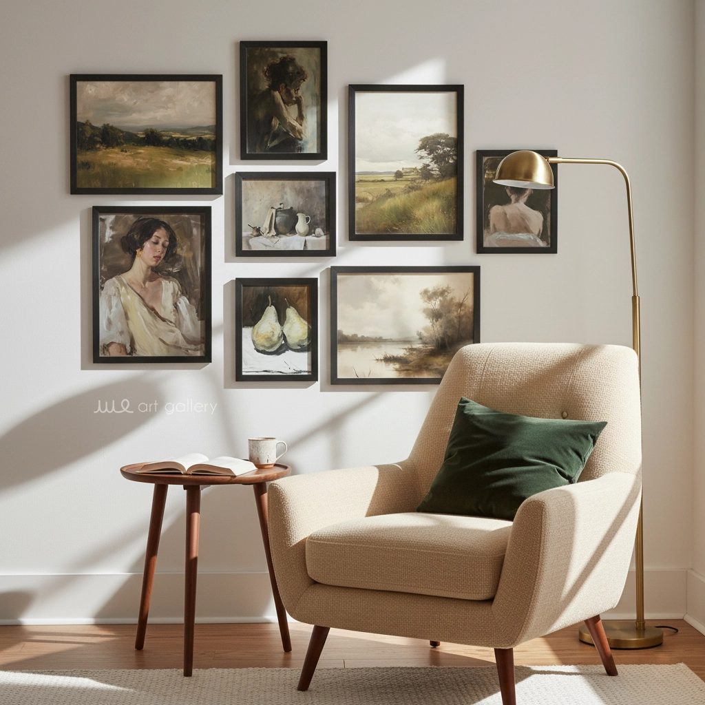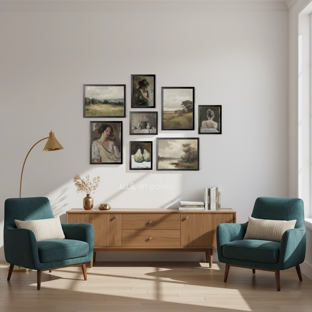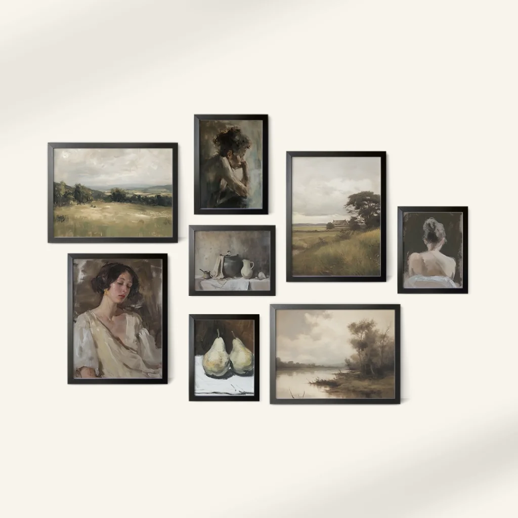 با ست 8 تایی تابلو دکوراتیو "Classic Nostalgia"، دیوارهای خود را به یک گالری هنری از نقاشیهای کلاسیک و دلنشین تبدیل کنید. این مجموعه منحصربهفرد، با تلفیقی هنرمندانه از پرترههای فیگوراتیو عمیق، مناظر طبیعی آرامشبخش (دشتهای وسیع، رودخانهها و درختان کهنسال) و نقاشیهای طبیعت بیجان (گلابی و ظروف قدیمی)، فضایی نوستالژیک، دنج و سرشار از آرامش را در منزل یا محل کار شما خلق میکند. "Classic Nostalgia" نه تنها یک دکور زیبا، بلکه یادآور داستانهای گذشته، زیبایی ماندگار هنر و لحظات عمیق تأمل است.
