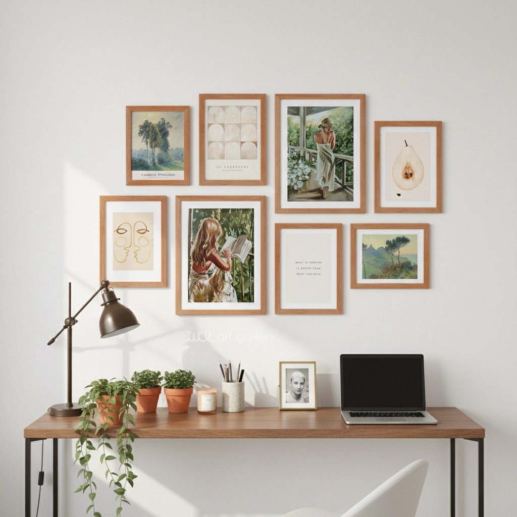 با ست 8 تایی تابلو دکوراتیو "Serene Moments"، دیوارهای خود را به یک گالری هنری از زیباییهای دلنشین طبیعت، لحظات تأملبرانگیز و پیامهای الهامبخش تبدیل کنید. این مجموعه منحصربهفرد، با تلفیقی هنرمندانه از نقاشیهای منظره (پیسارو، ونگوگ)، پرترههای زنان در حال مطالعه و لذت بردن از محیط، طرحهای مینیمال چهره و میوه (گلابی) و یک متن انگیزشی دلنشین، فضایی شیک، مدرن و آرامشبخش را در منزل یا محل کار شما خلق میکند. "Serene Moments" نه تنها یک دکور زیبا، بلکه یادآور زیباییهای بیپایان طبیعت، آرامش درونی و لذت بردن از لحظات ساده زندگی است.