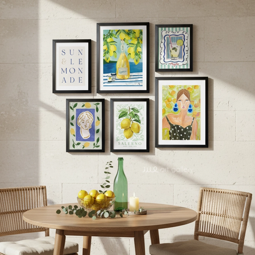 با ست 6 تایی تابلو دکوراتیو "Sun & Lemon"، دیوارهای خود را به بوم نقاشی از طراوت تابستان، انرژی لیمو و عمق هنر مدیترانهای تبدیل کنید. این مجموعه منحصربهفرد، با تلفیقی هنرمندانه از نقاشیهای فیگوراتیو با اکسسوریهای جسورانه، صحنههای دلنشین از لیموناد تازه و لیموهای رسیده، طرحی کلاسیک از مجسمههای یونانی با تم لیمو، و متنهای الهامبخش، فضایی شیک، مدرن و پرانرژی را در منزل یا محل کار شما خلق میکند. "Sun & Lemon" نه تنها یک دکور زیبا، بلکه یادآور شادی، طراوت و لذت بردن از لحظات آفتابی زندگی است.