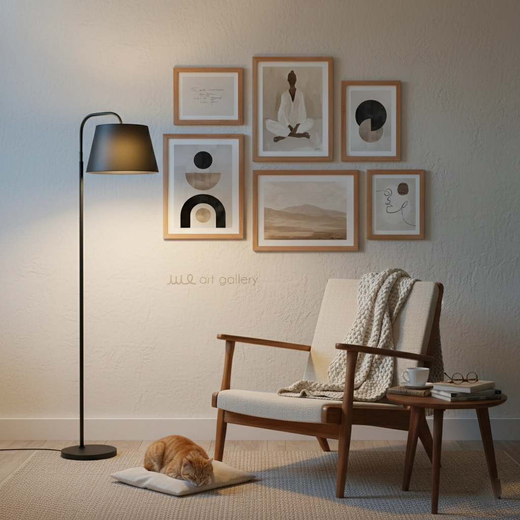 مجموعهای عمیق و مینیمال از هنر انتزاعی و مناظر طبیعی برای خلق فضایی متفکرانه، آرام و الهامبخش.