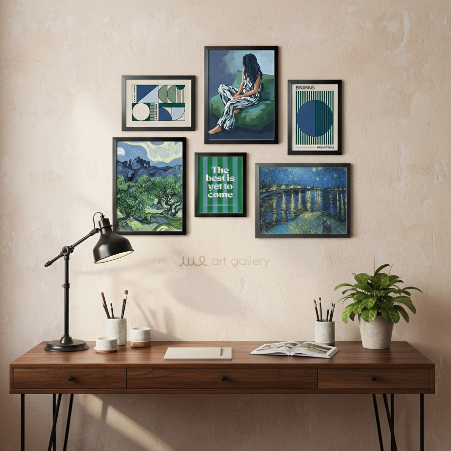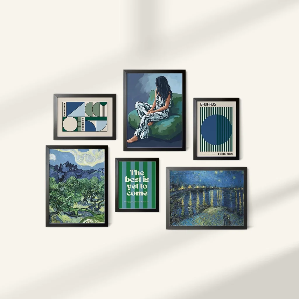 با ست 6 تایی تابلو دکوراتیو "Deep Blue Artistry"، دیوارهای خود را به یک گالری هنری از شاهکارهای جهانی و جلوههای مدرن تبدیل کنید. این مجموعه منحصربهفرد، با تلفیقی هنرمندانه از دو اثر جاودانه ونگوگ ("شب پرستاره" و "درختان زیتون")، نقاشی زنی متفکر در فضایی عمیق، طرحهای هندسی الهام گرفته از باهاوس، و یک متن انگیزشی دلنشین ("The best is yet to come")، فضایی غنی، مدرن و الهامبخش را در منزل یا محل کار شما خلق میکند. "Deep Blue Artistry" نه تنها یک دکور زیبا، بلکه یادآور عمق هنر، شکوه طبیعت و قدرت امید و آینده است.